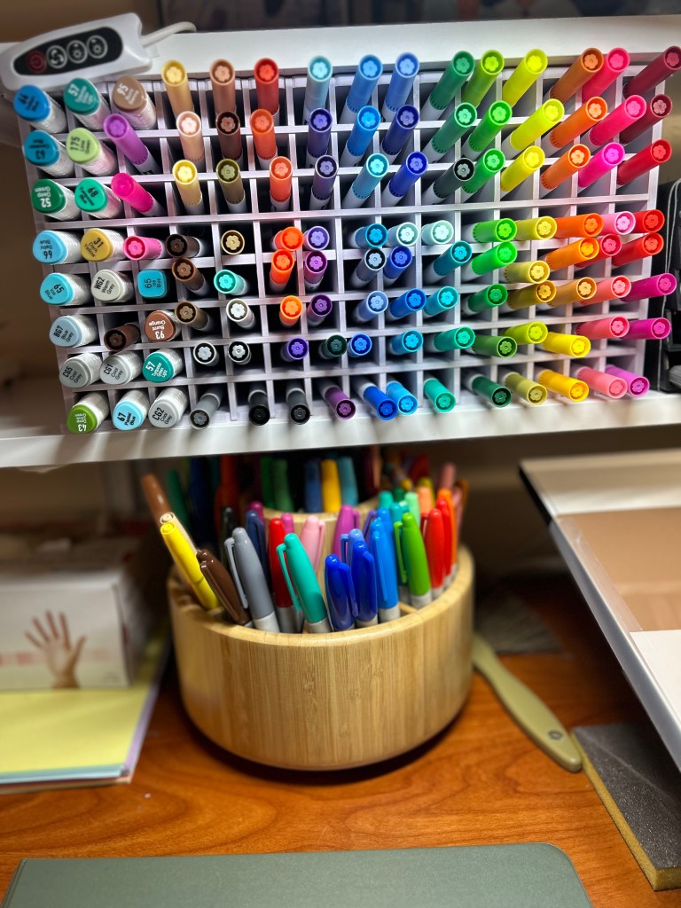 I finally settled on marking pens. But the problem I found it that I never seemed to have the right shade of color that I wanted. Currently, the first dozen pictures on my Mosaic wall in this mode. If I hadn’t been a techie who knew how painting/drawing apps were, I might have remained in the “marking pen” mode.