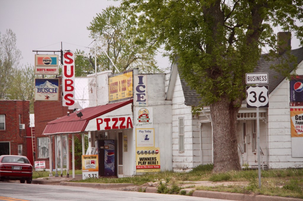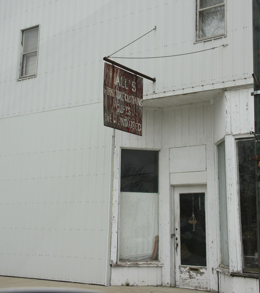 I’ve gone through thousands of small towns in my fifty years of traveling America. One of the things that always catches my attention are the faded signs of the past on an abandoned building. I am always tempted to stop and try to find out a little about the sign, as I’m sure it has an interesting history. I did try once, but all I got were shrugs and “I don’t know”. So, instead, I tend to make up stories about every sign I encounter. I’m pretty sure this picture is from a town in my area that was probably once a well traveled tourist path. But, now it is likely just local people going about their daily business.