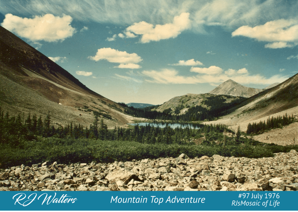 I was a 30-year-old single guy when I took this adventure. It was on a mountain top in southwestern Colorado, although I don’t remember exactly where now. I spent the year before outfitting my recently purchased Chevy van as a camper. My freshly minted roommate and I left Indiana one morning and were at the 10,000 ft elevation twenty-four hours later. That same day, we hiked to the 12,000 level where this picture was taken. Even in my youth I discovered that doing that so quickly was not a smart thing to do.