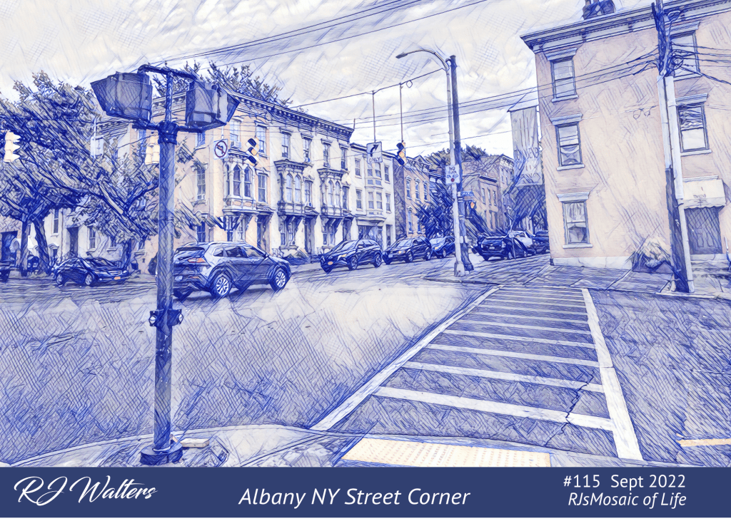 I love this “pen & ink” version of cityscape mosaic, so I am going to add it as a stand alone topic here at RJsMosaic. One of the prerequisites of this new category of “Cityscapes (Pen & Ink)” is that the image must contain historic buildings and infrastructure/utilities. Another is it must represent the character of the area where it was taken.