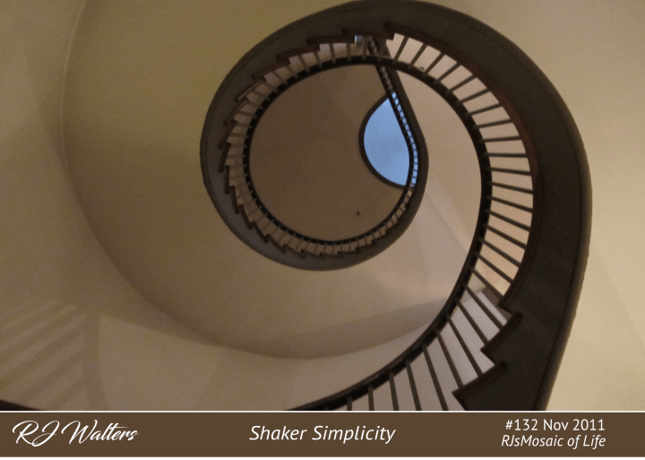 Shaker furniture, which I love, is usually known for its simplicity, but there are many places throughout the village that demonstrate the complexity and its corresponding beauty of their crafts. The stairwell in the Trustee’s Office is certainly one of those places.